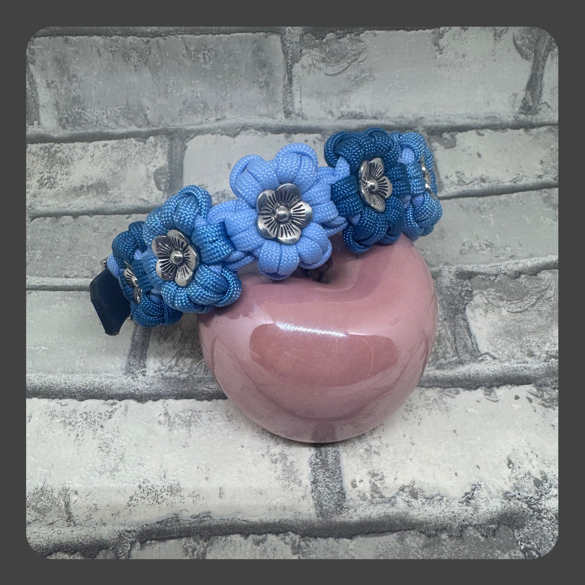 Hier habt ihr die Möglichkeit ein Blumenhalsband in den Farben verschieden Blautöne, als Sofortkauf zu erwerben, das Halsband ist ungetragen, es hat einen Halsumfang von 25-29cm.