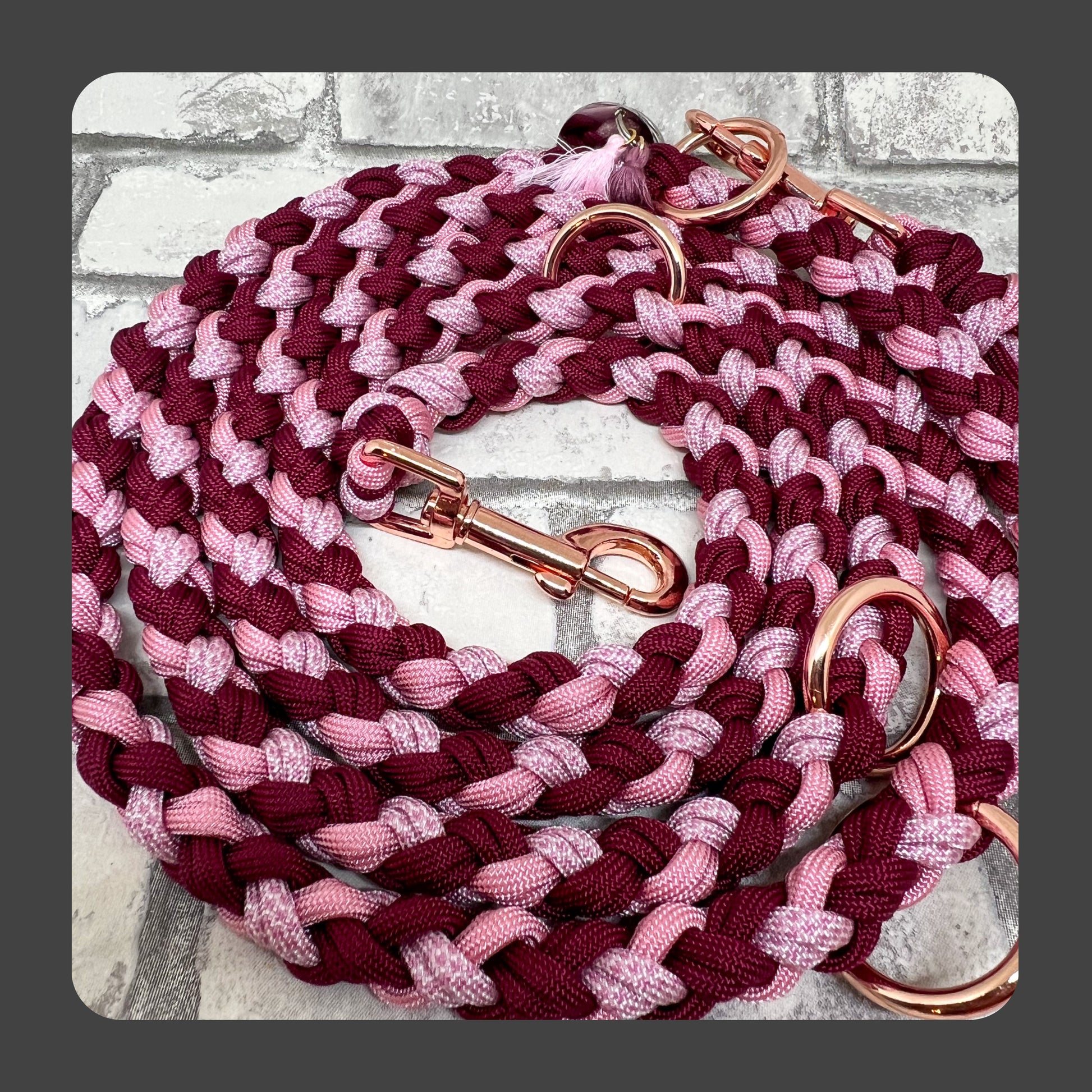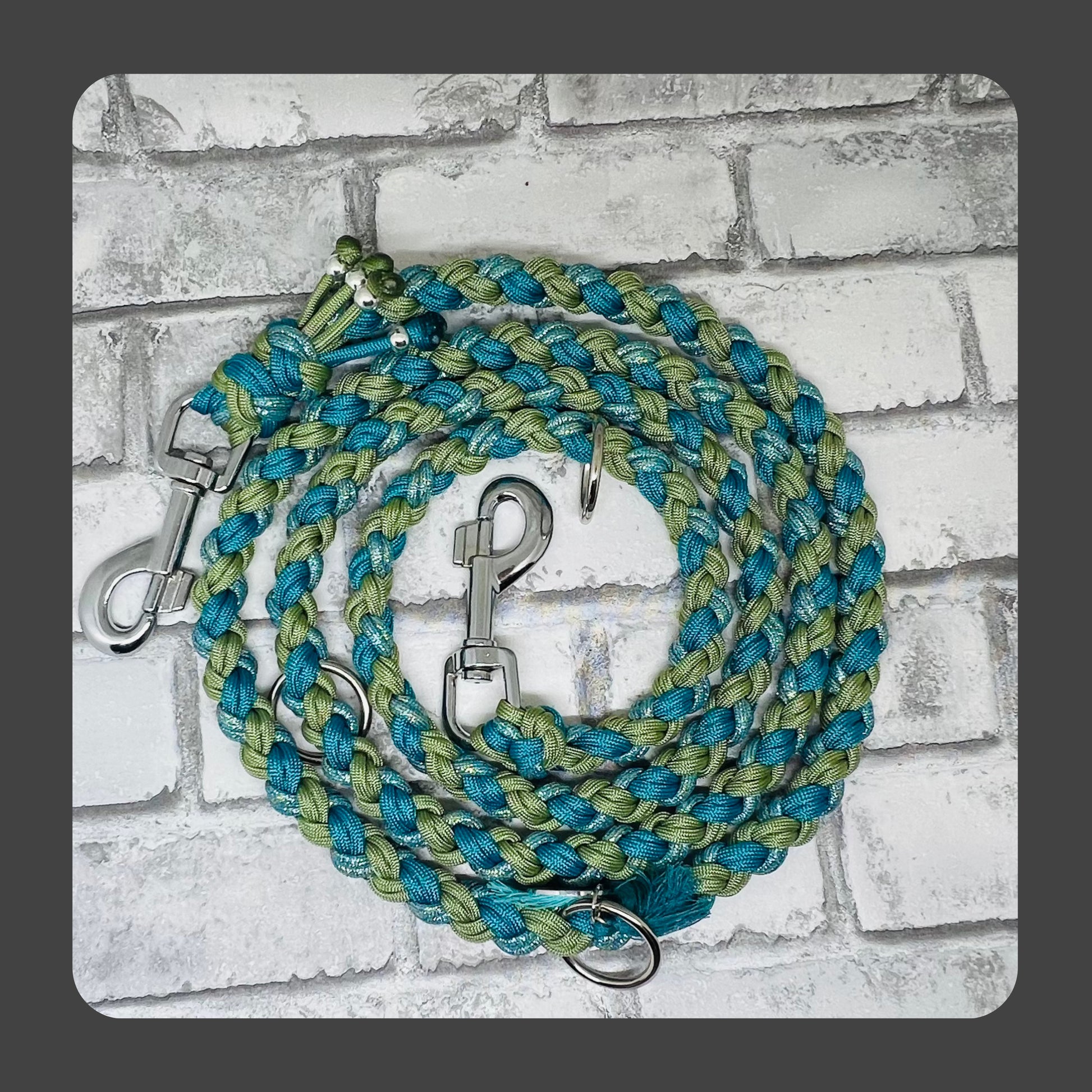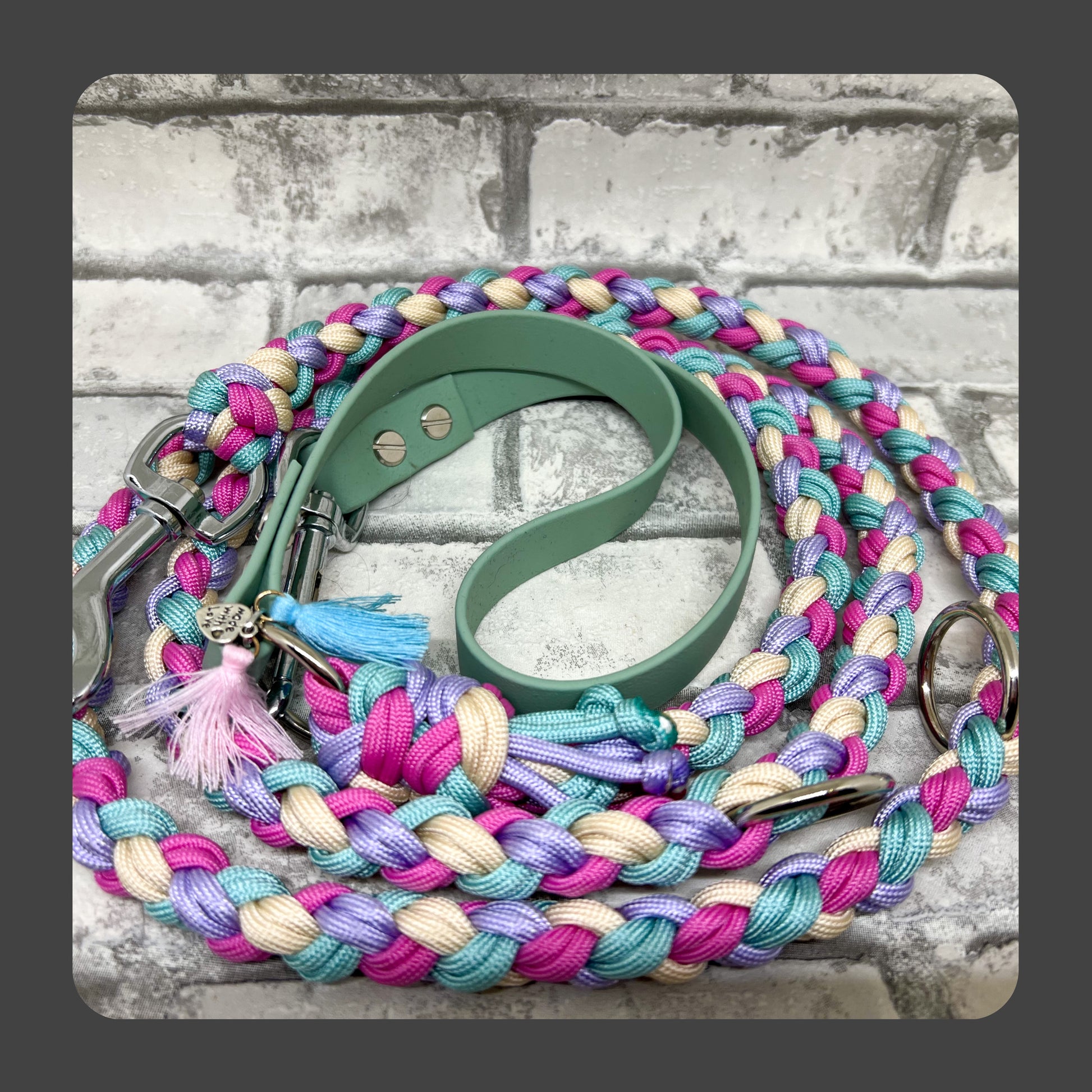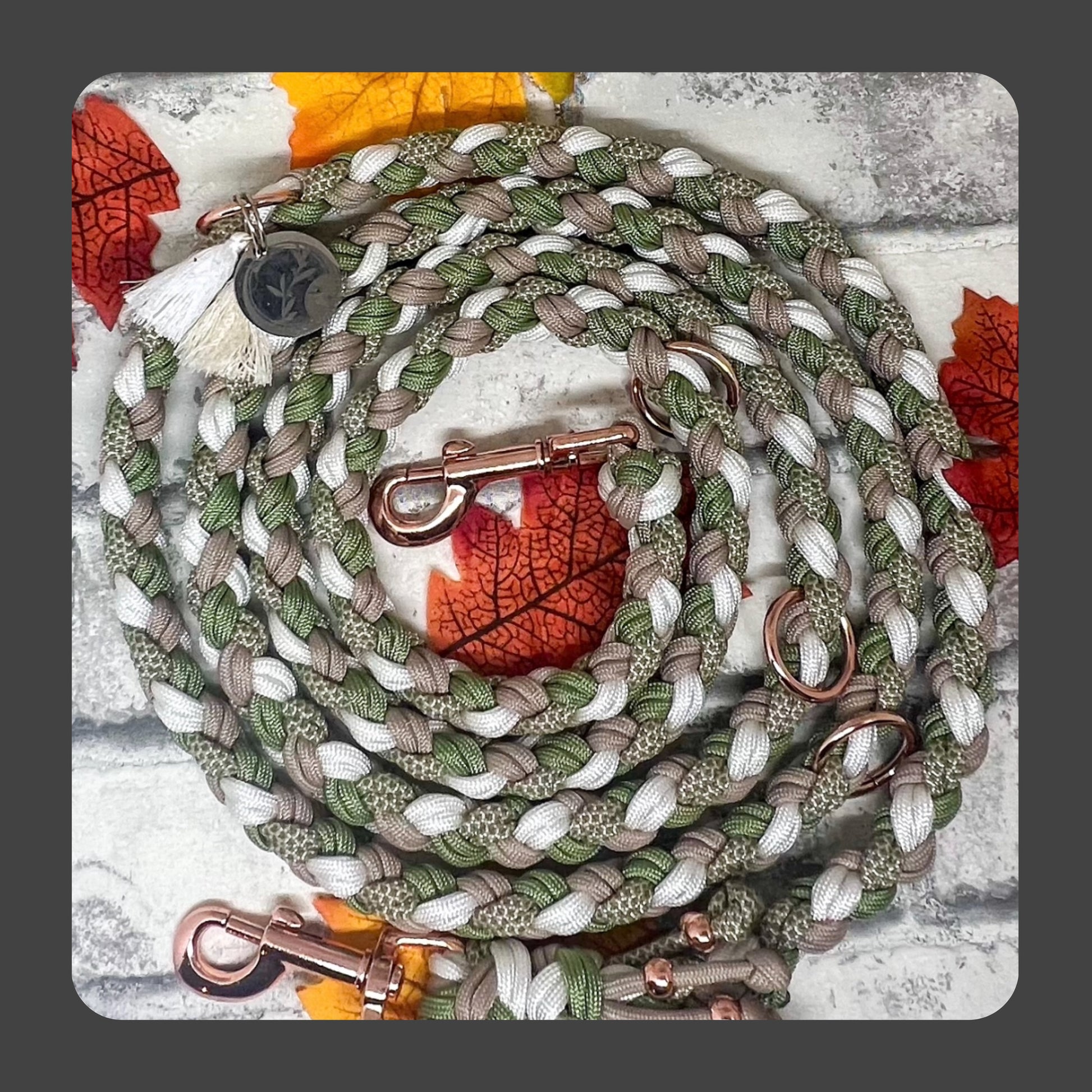 Leine Luna ist eine Rundgeflochtene Paracord Leine. Sie wird mit 4 Strängen doppelt geflochten.